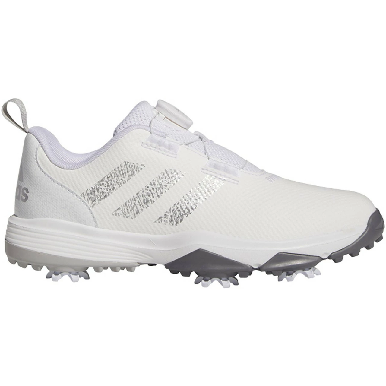 These juniors’ adidas golf shoes are made for performance on the course. They feature full-length Bounce cushioning for comfort and flexibility, and a six-cleat Adiwear outsole for grip. The mesh upper has a protective film that makes it easy to keep clean. The BOA Fit System lets you dial in the perfect fit. Made with a series of recycled materials, and at least 50% recycled content, this product represents just one of our solutions to help end plastic waste.