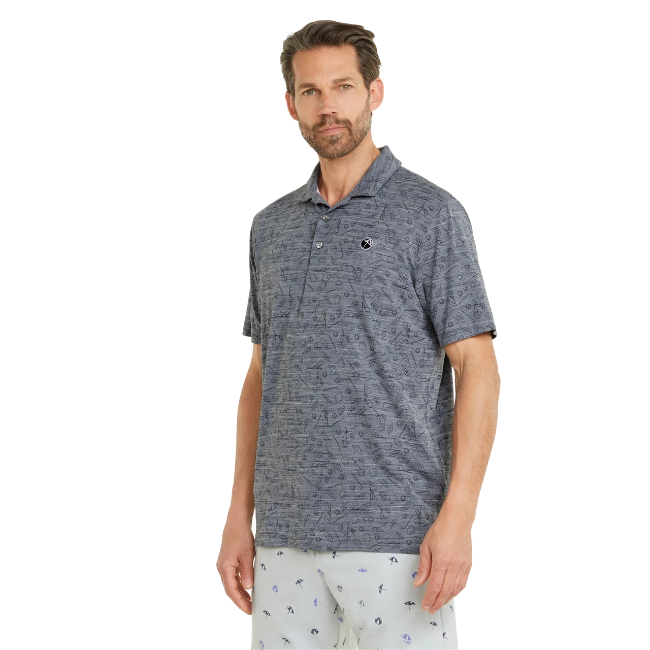 - Features all over print of iced tea ditsy print including elements of the drink, a nod to the king, lemons, and golf clubs